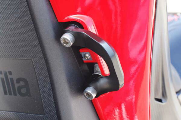 RSV4でサーキット走行やレース等を楽しまれる方は、ワインポイント的なアクセサリーにもなる、このレーシングフックを是非ご活用下さい。